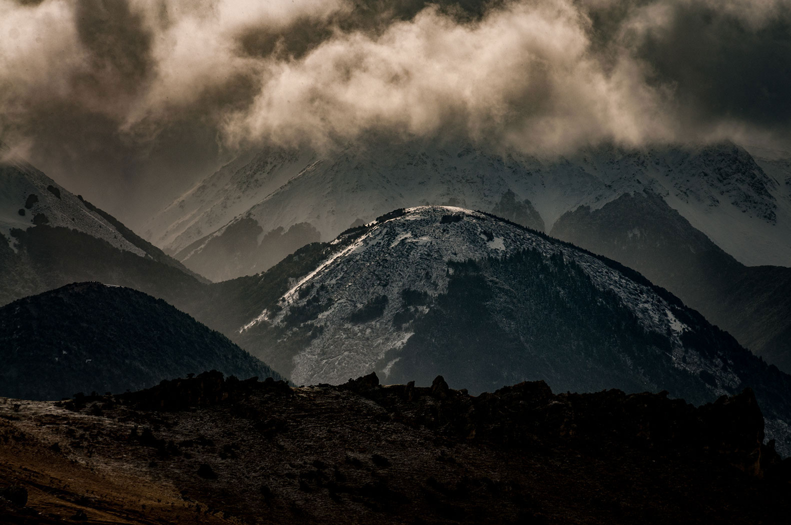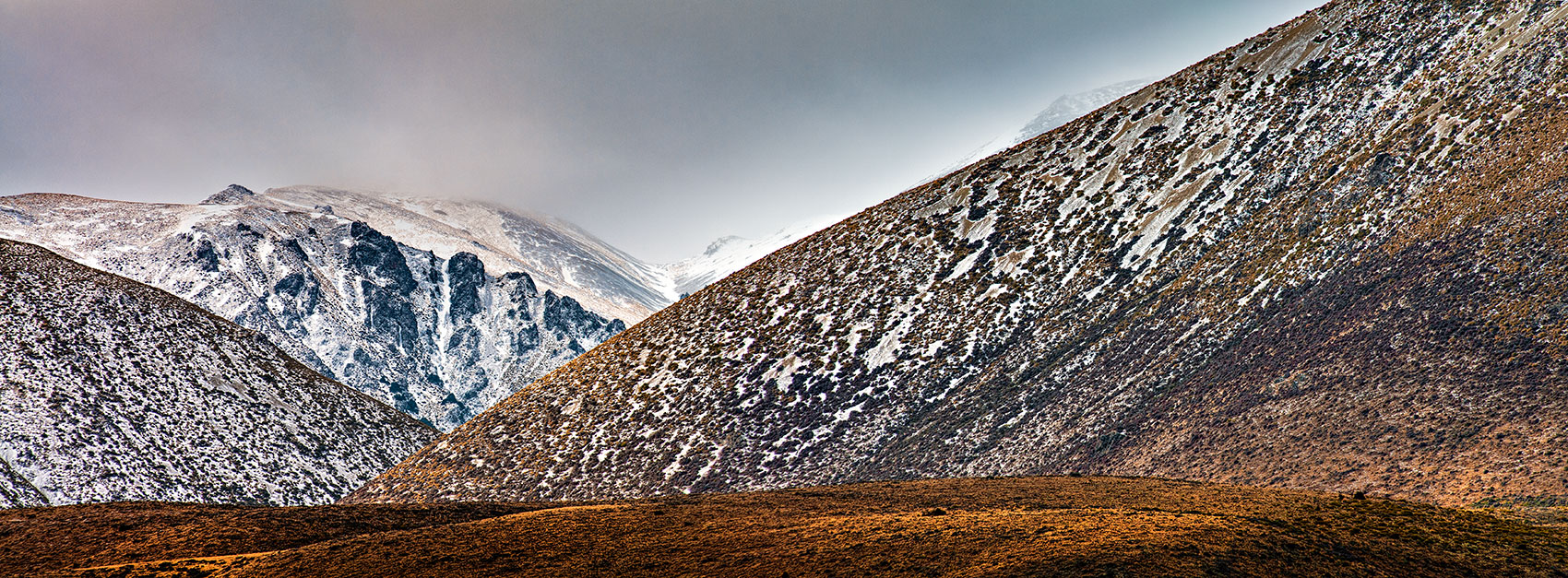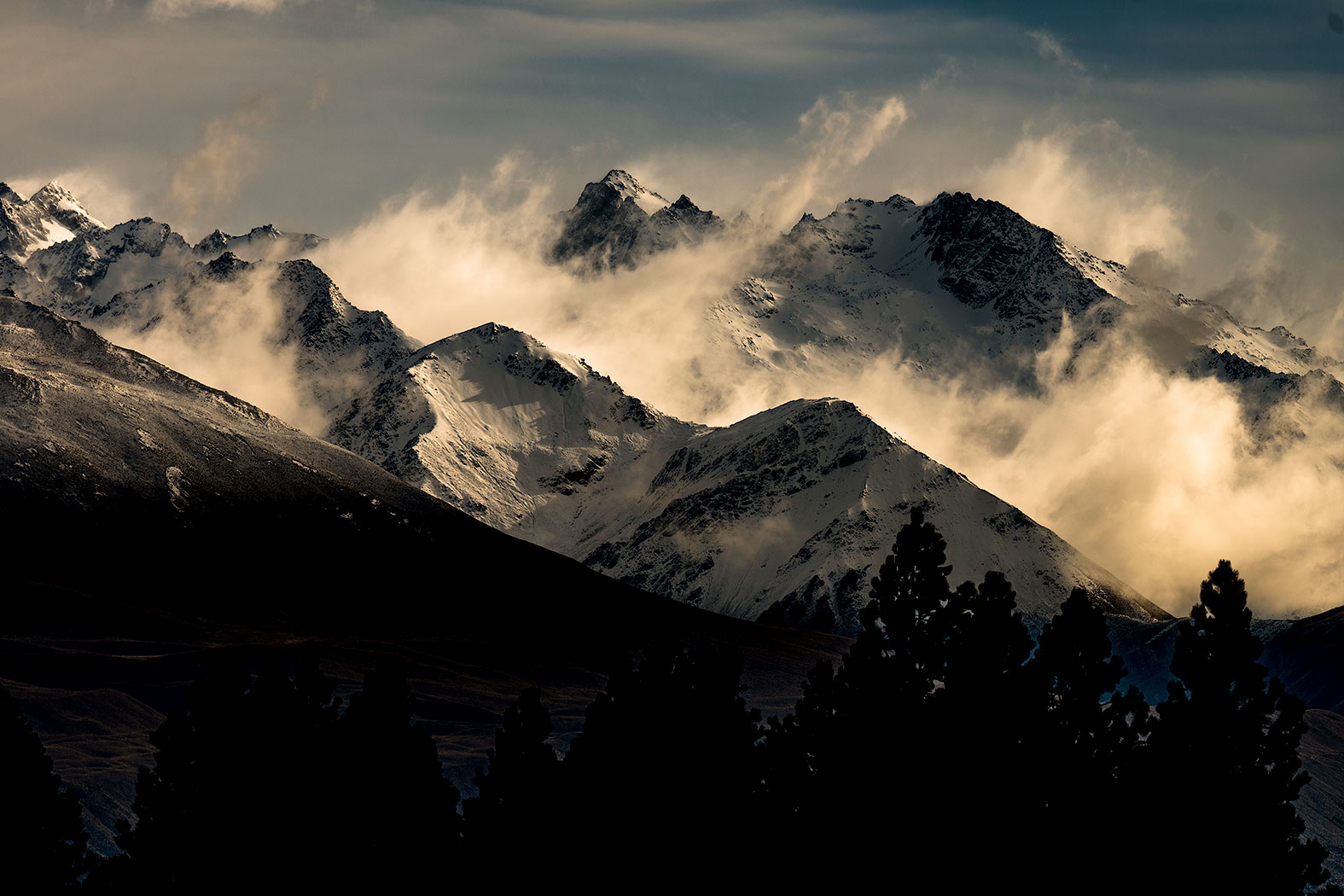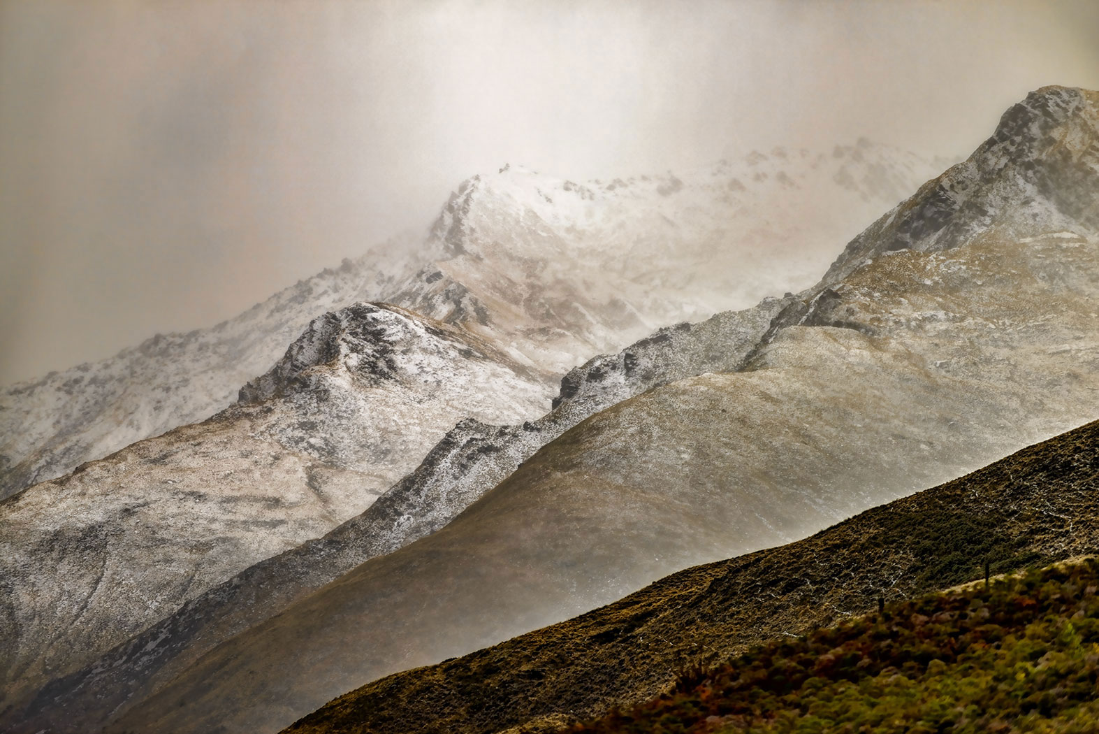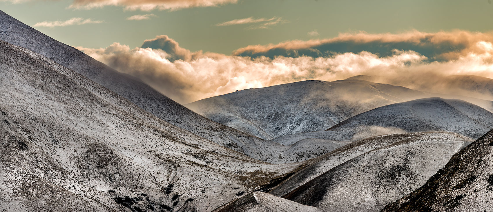 Low cloud and mist dancing over Rangitata Gorge Road mountains.