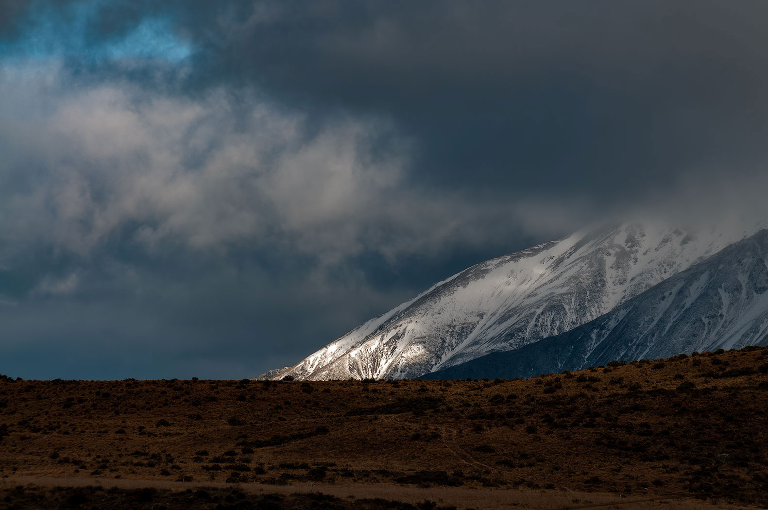 Rain falling onto mountain side, Hakatere.