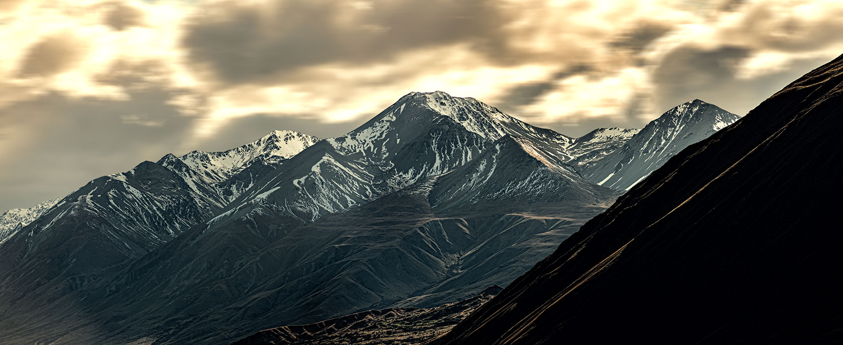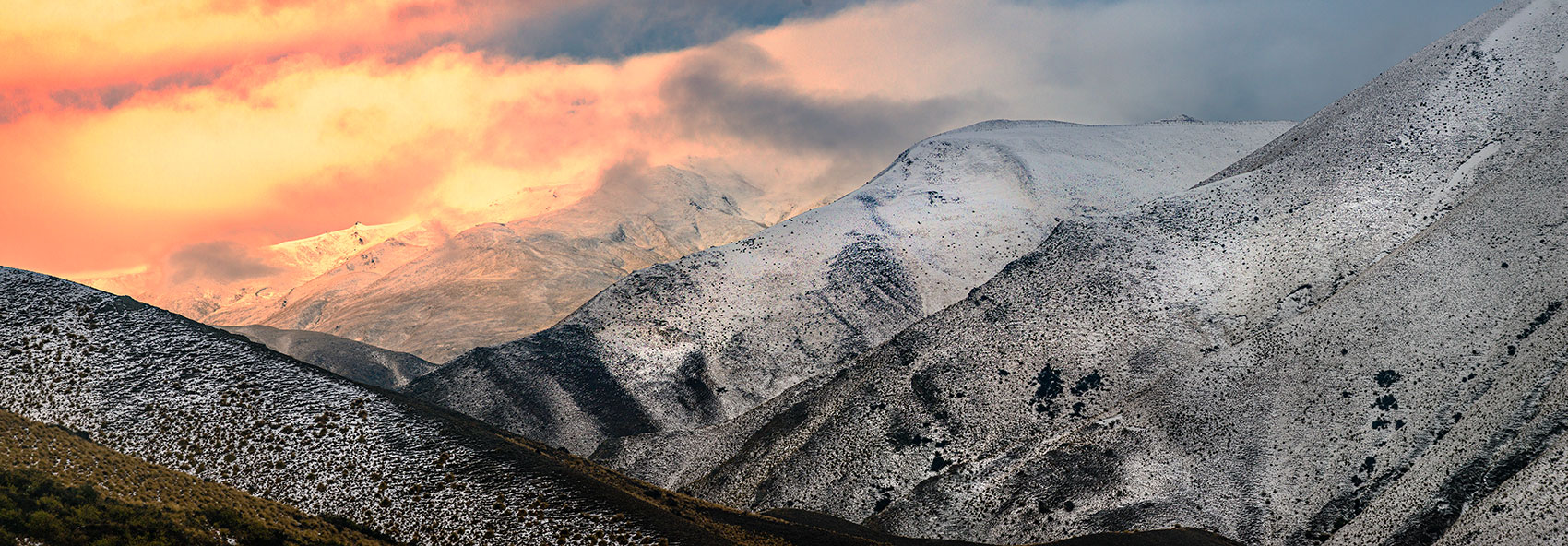 Rugged peaks at sunset, Rangitata Gorge Road.